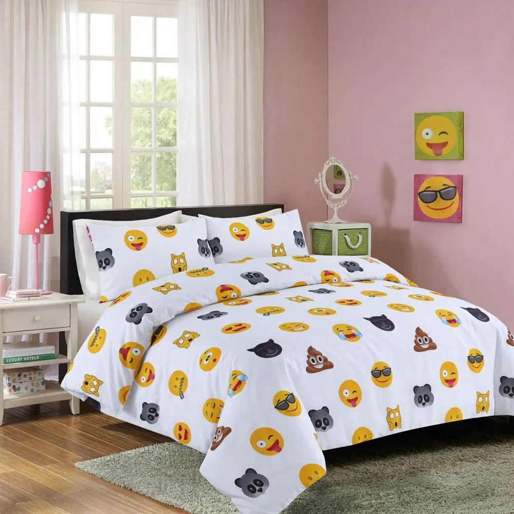 Add a fresh and enjoyable look to your room with this latest bedding design.The Emoji Icons bedding range is made from a premium blend of cotton and polyester, offering great quality at an affordable price. Available in 5 vibrant colours to suit any style.